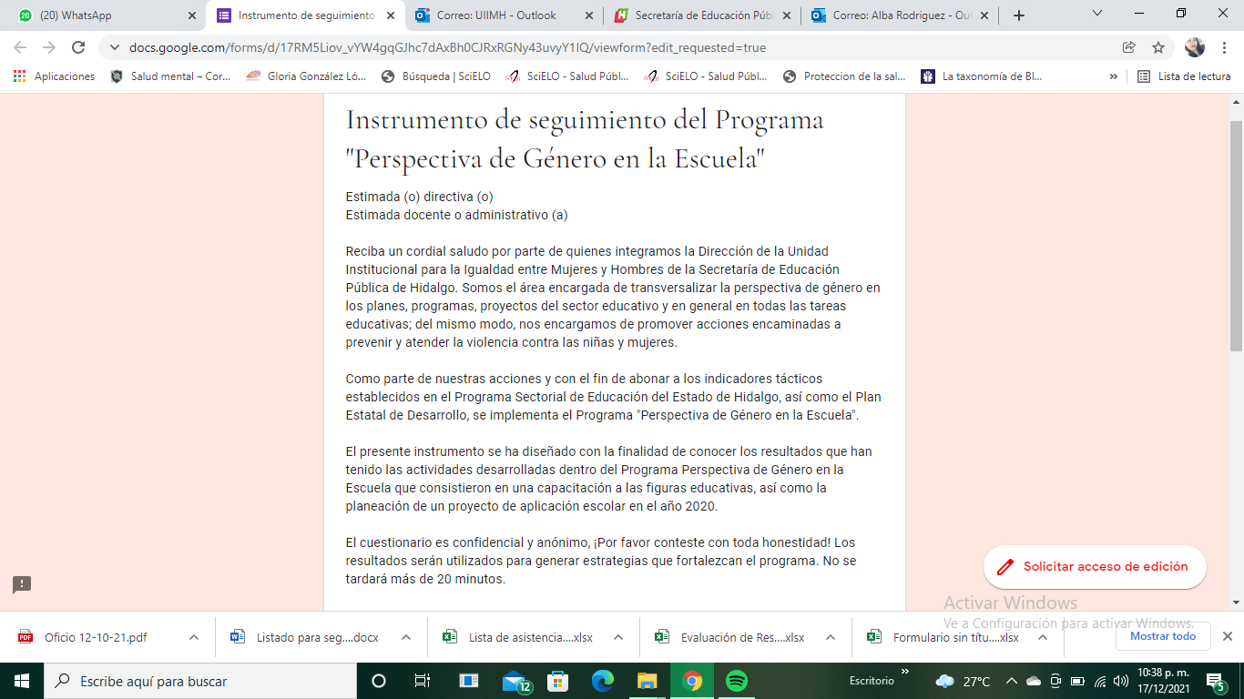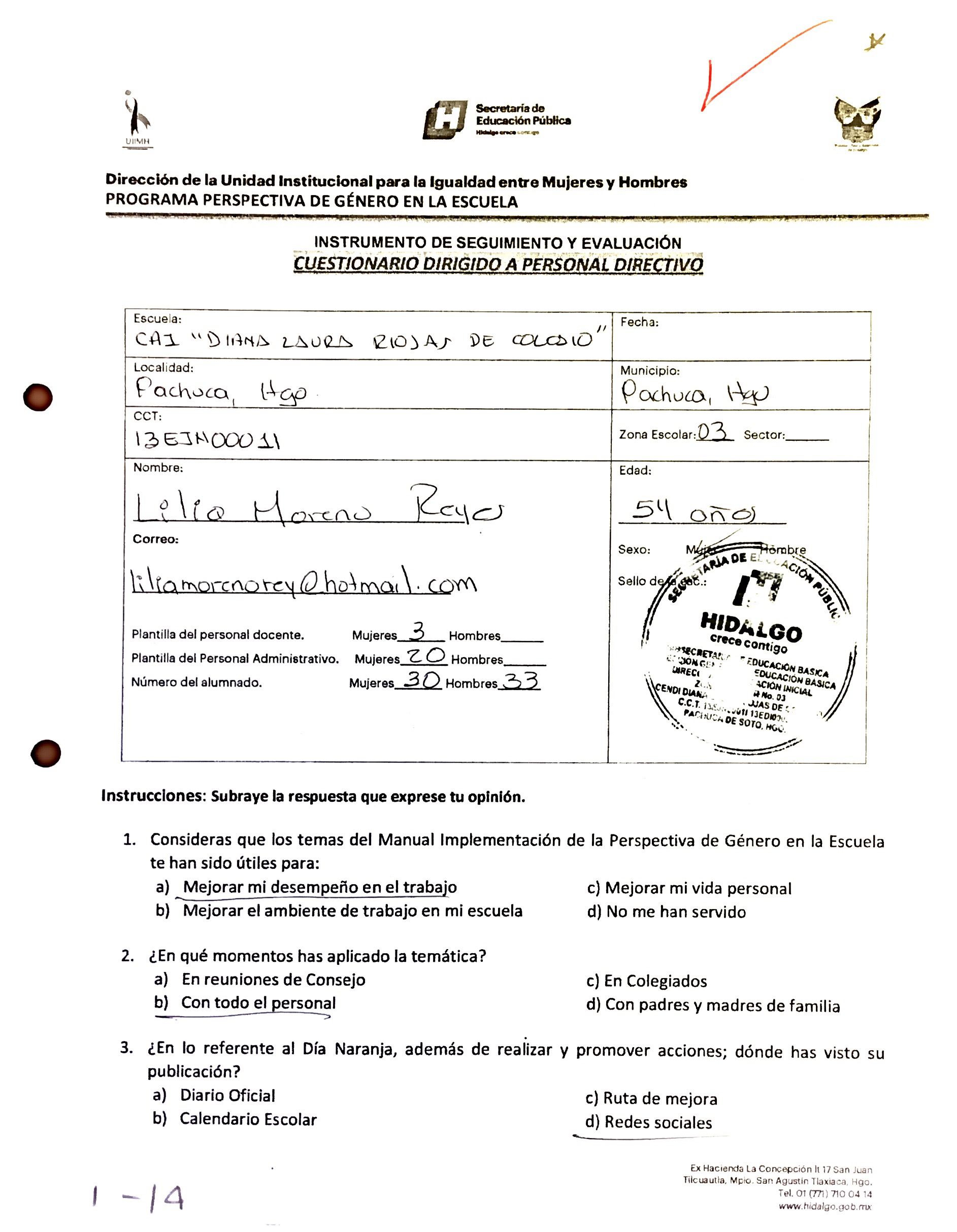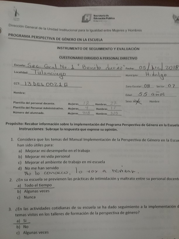 Cuestionario Dirigido a Personal Directivo de la Esc. Sec. Benito Juárez