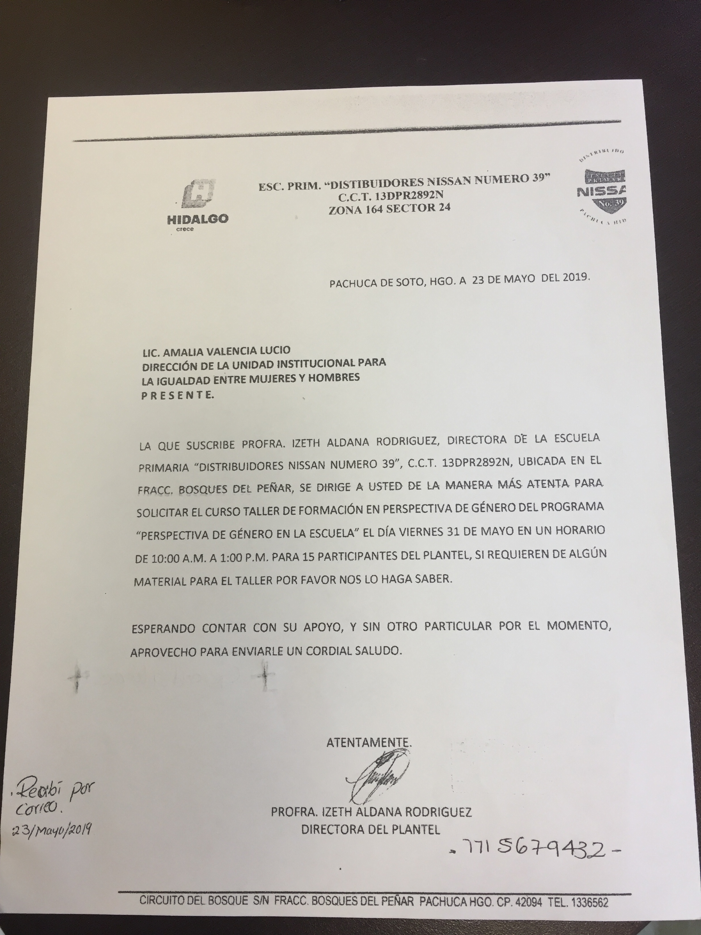 Oficio de Comisión del Jardín de Niños Julio Minjares H.