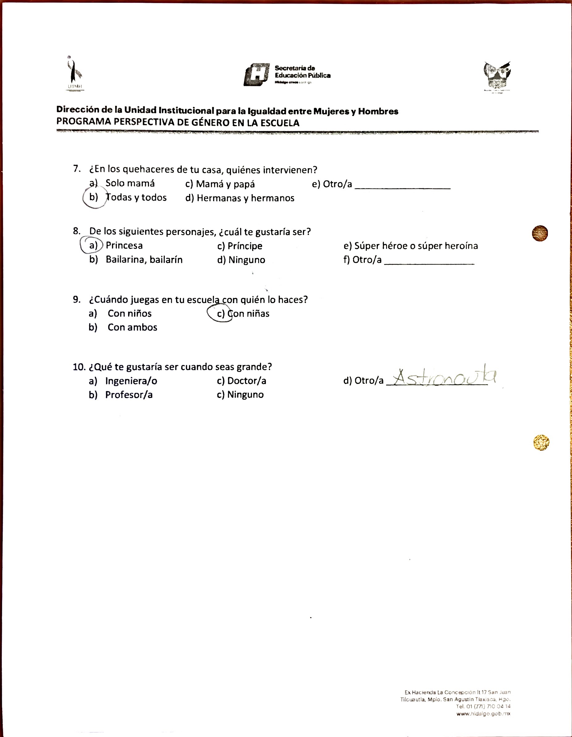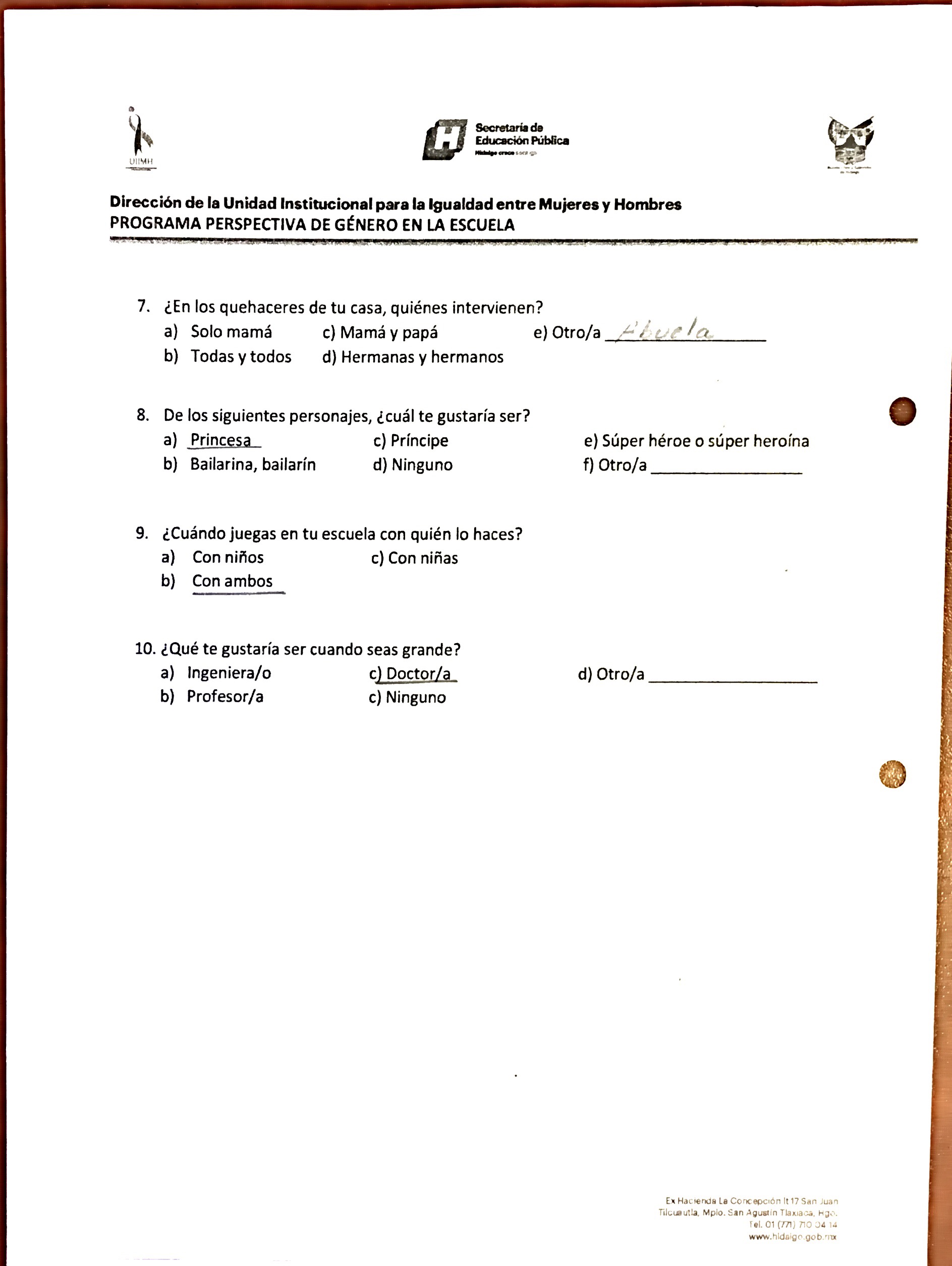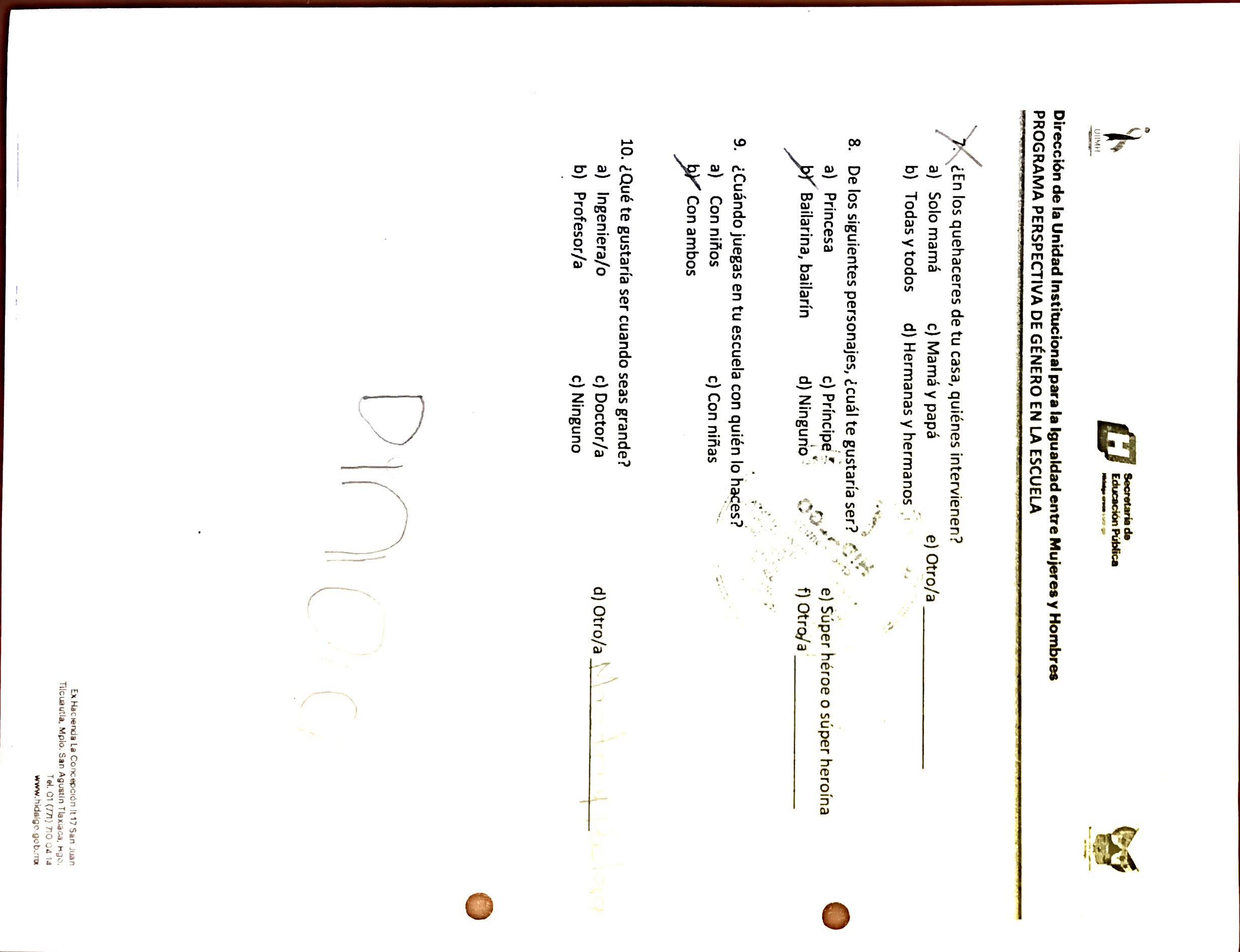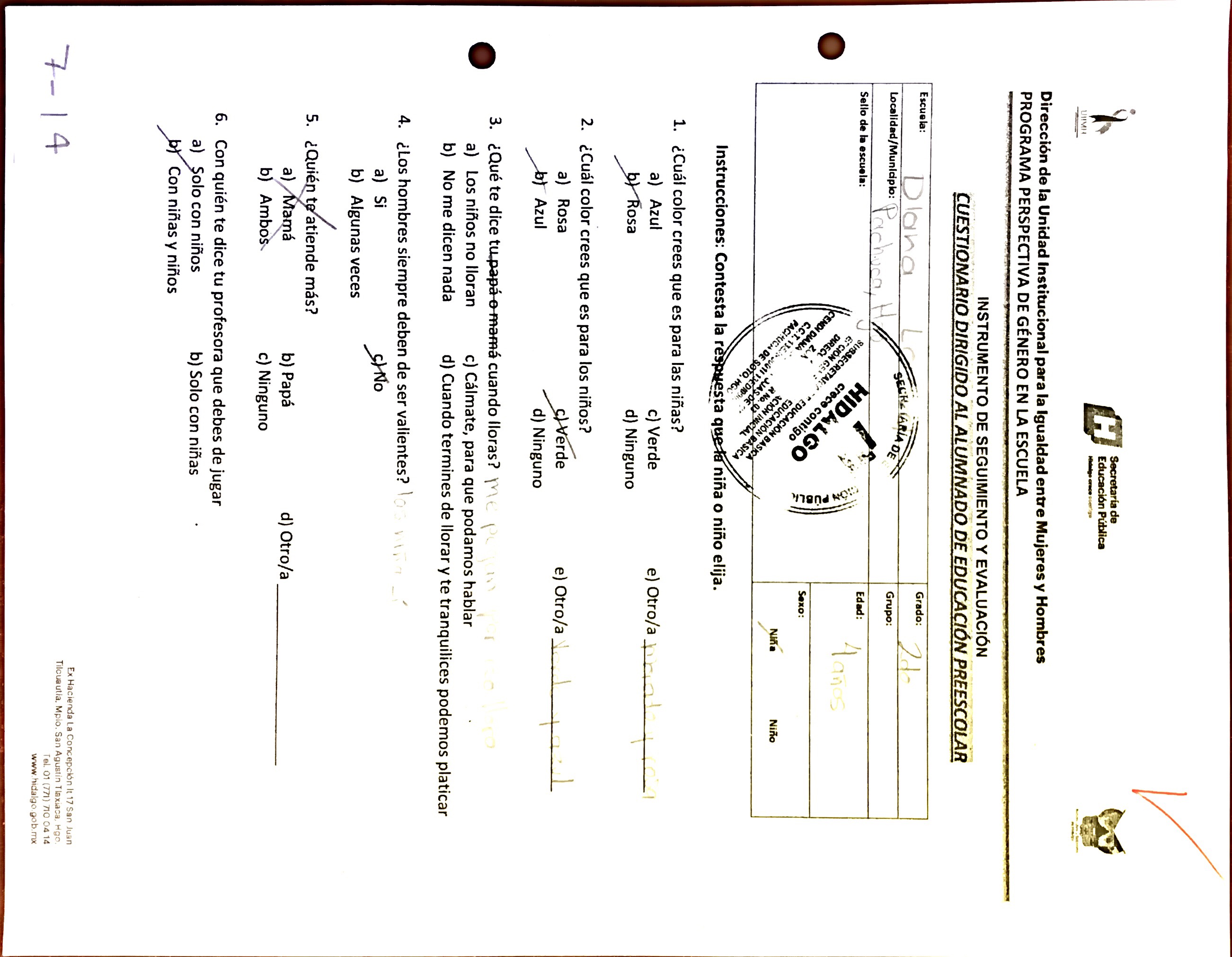 Cuestionario Dirigido a Alumnos y al Personal del Jardín de Niños Julio Minjares