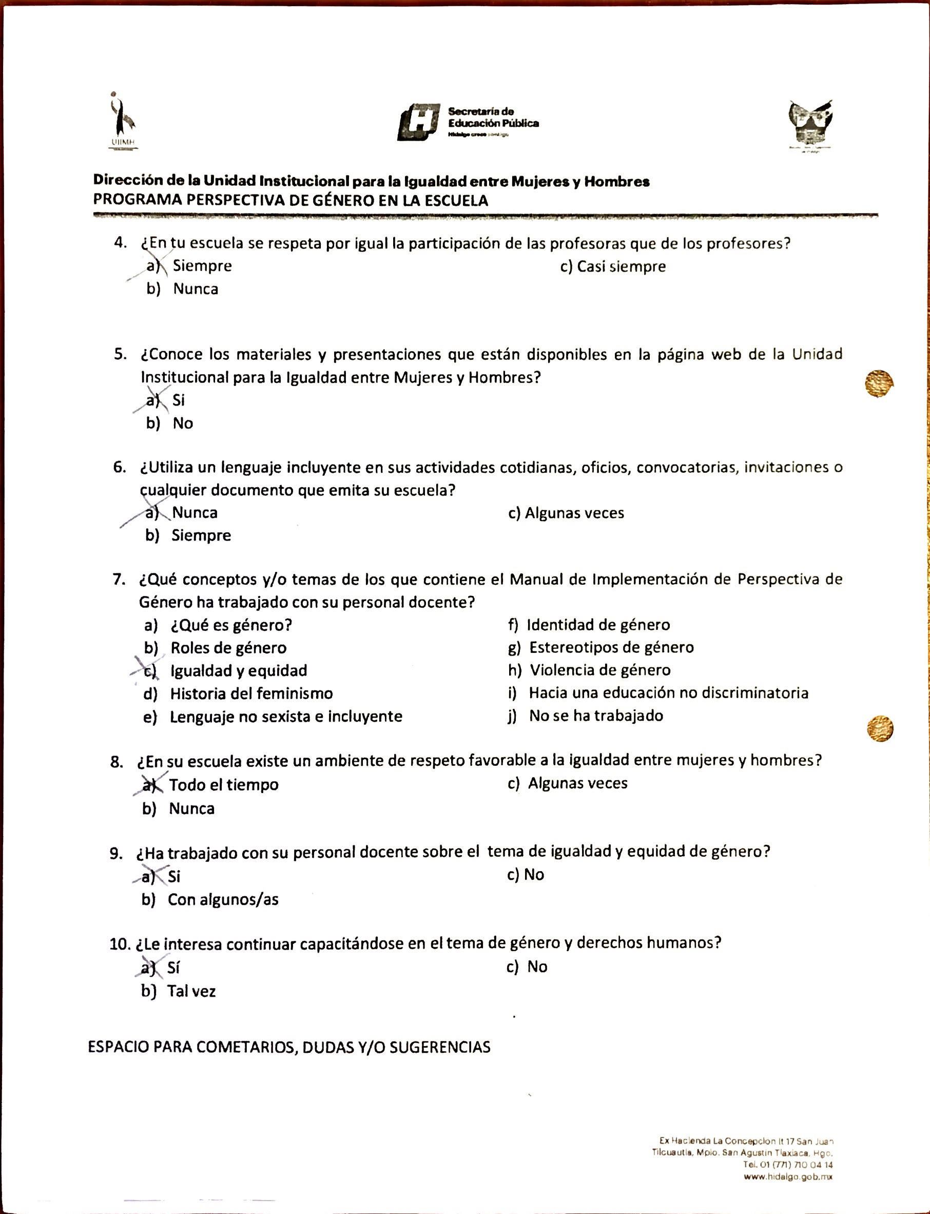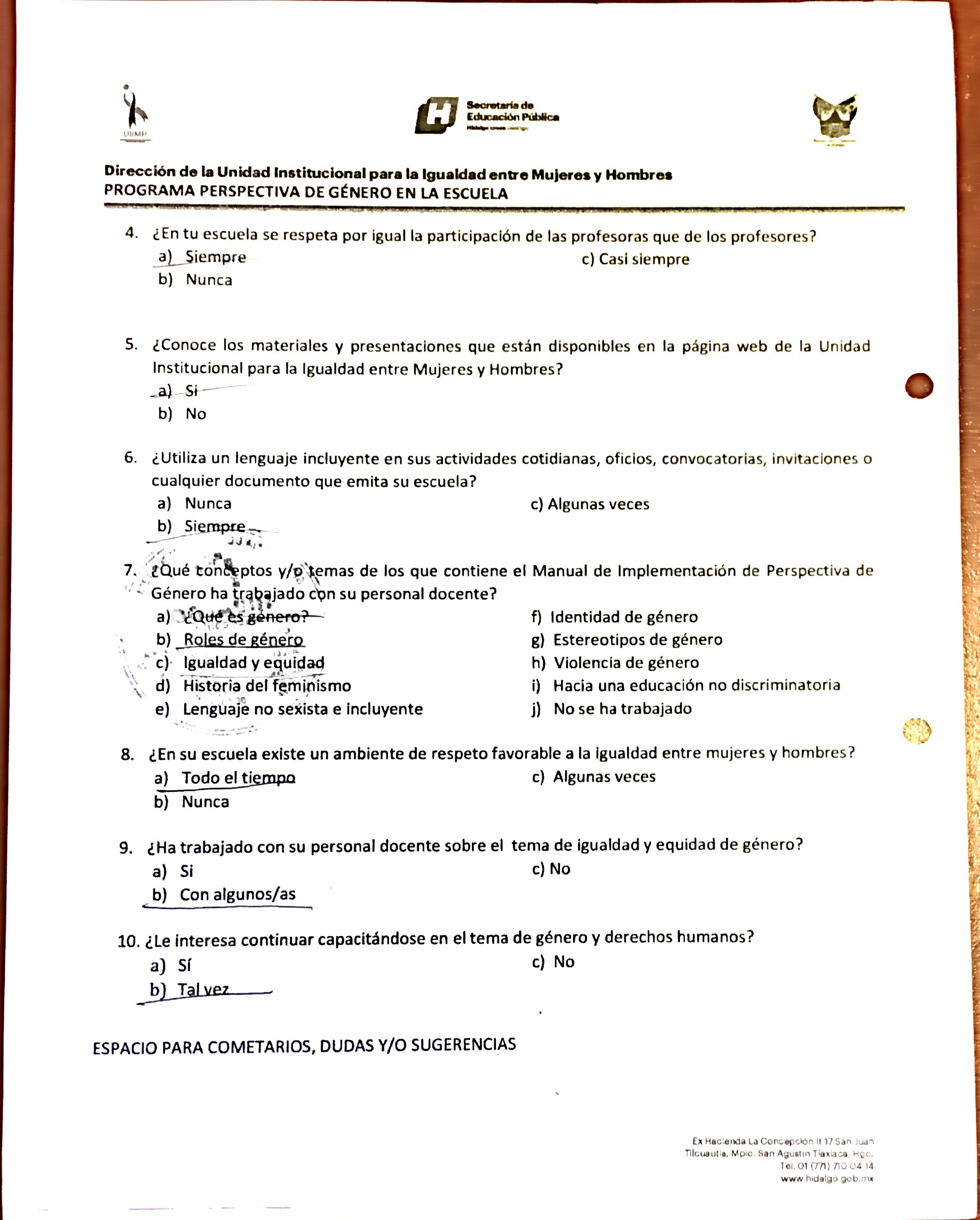 Cuestionario Dirigido a Alumnos y a Personal de la Esc. Lázaro Cárdenas
