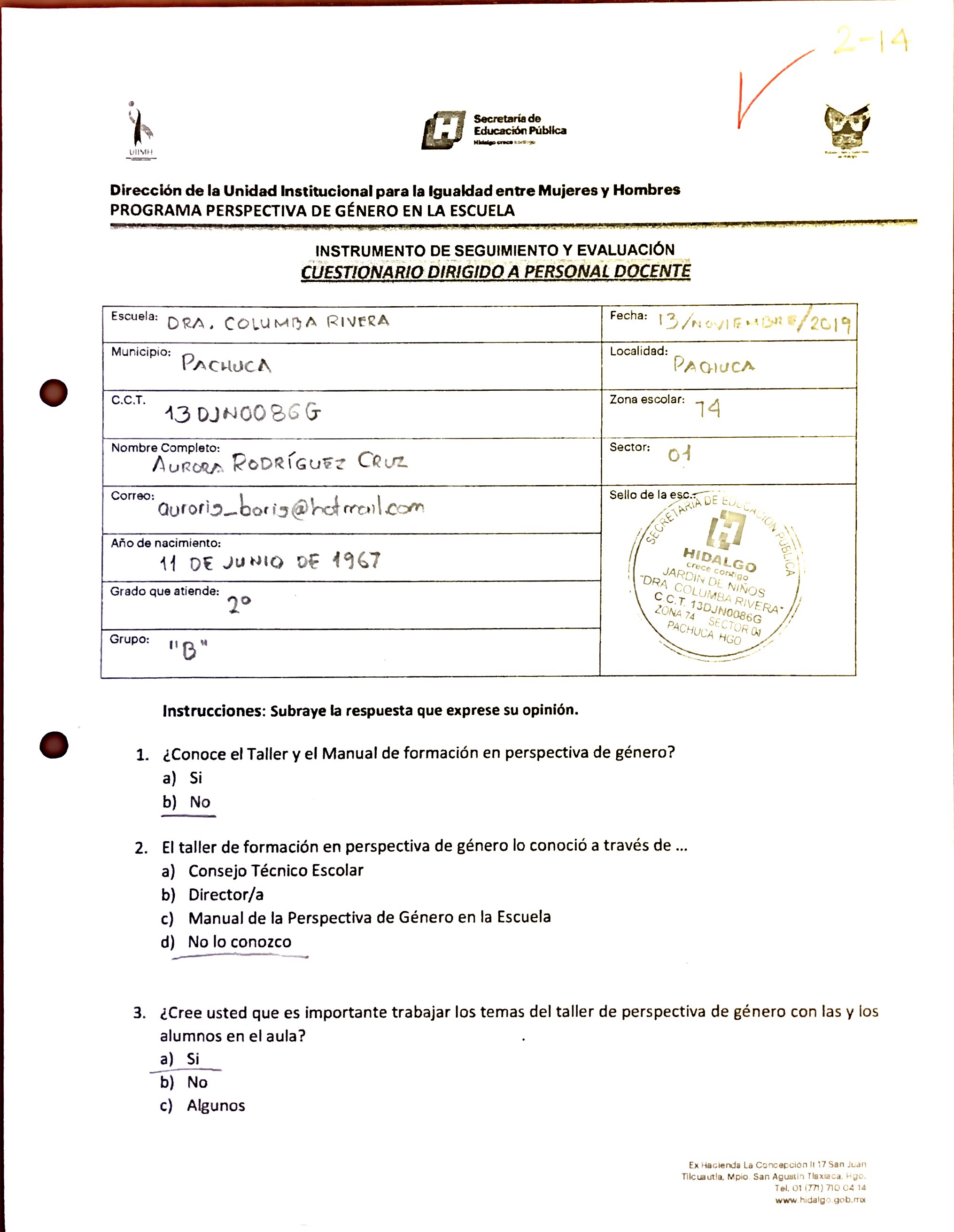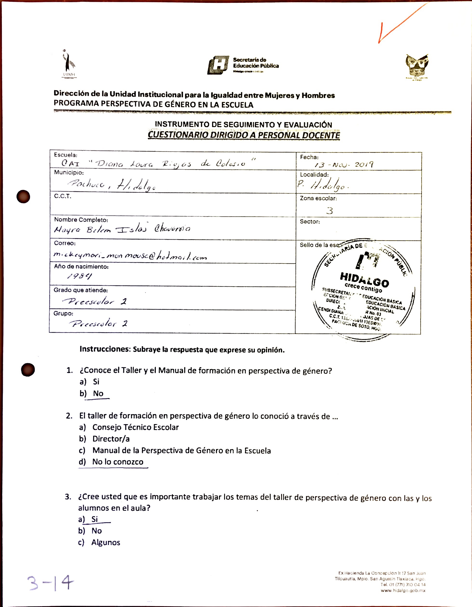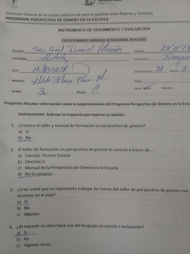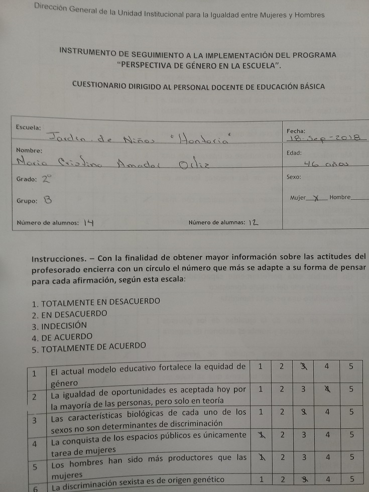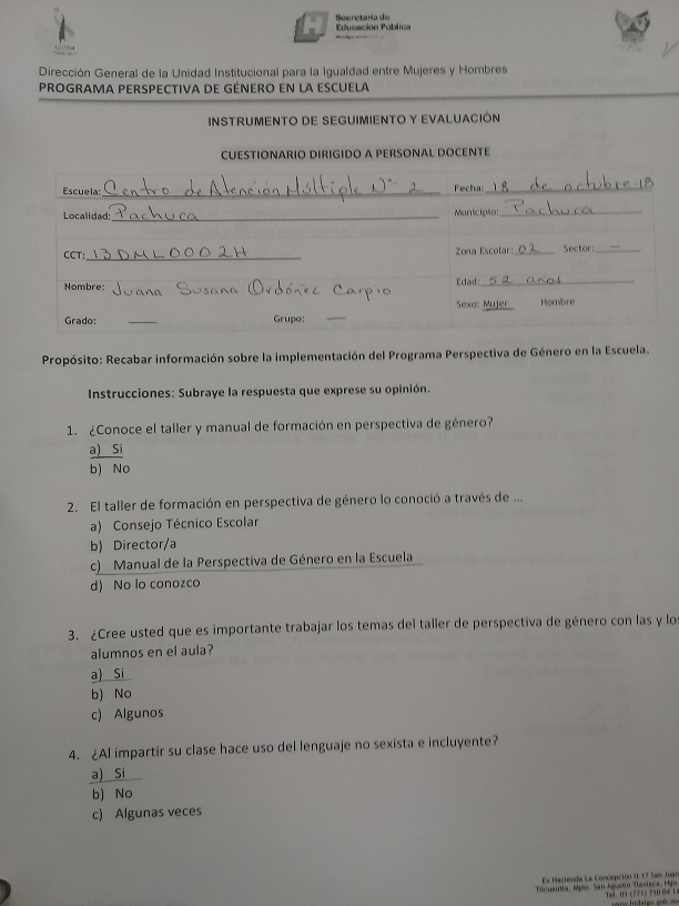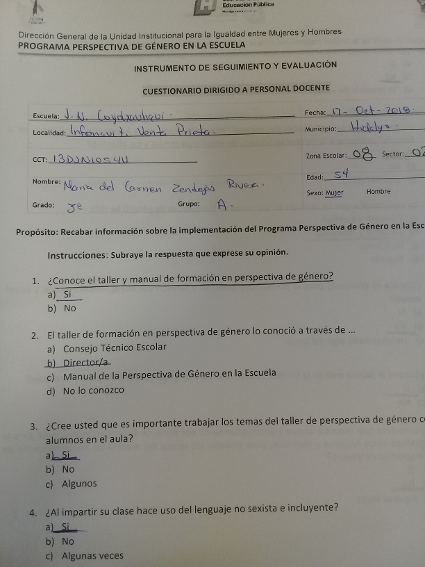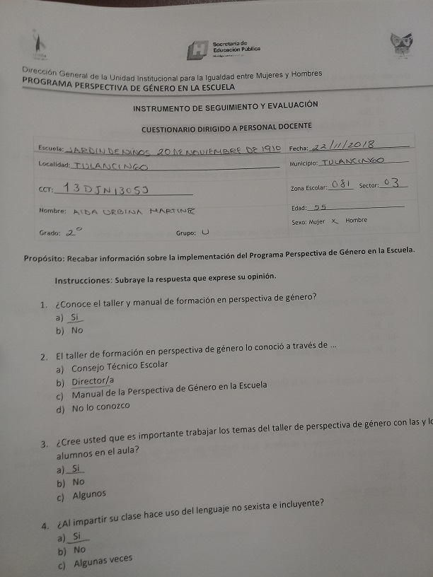 Cuestionario Dirigido al Personal Docente del Jardín de Niños 20 de Noviembre