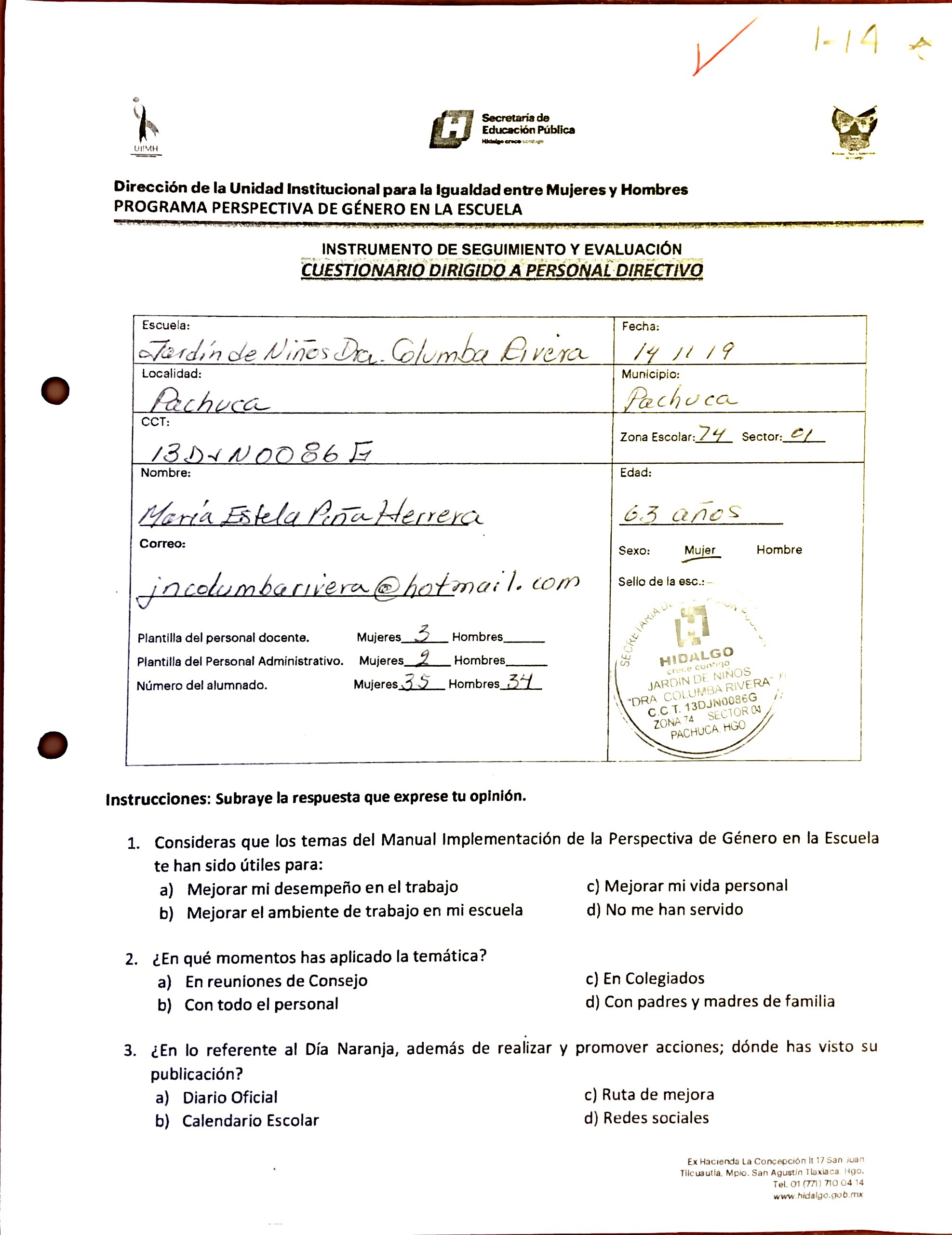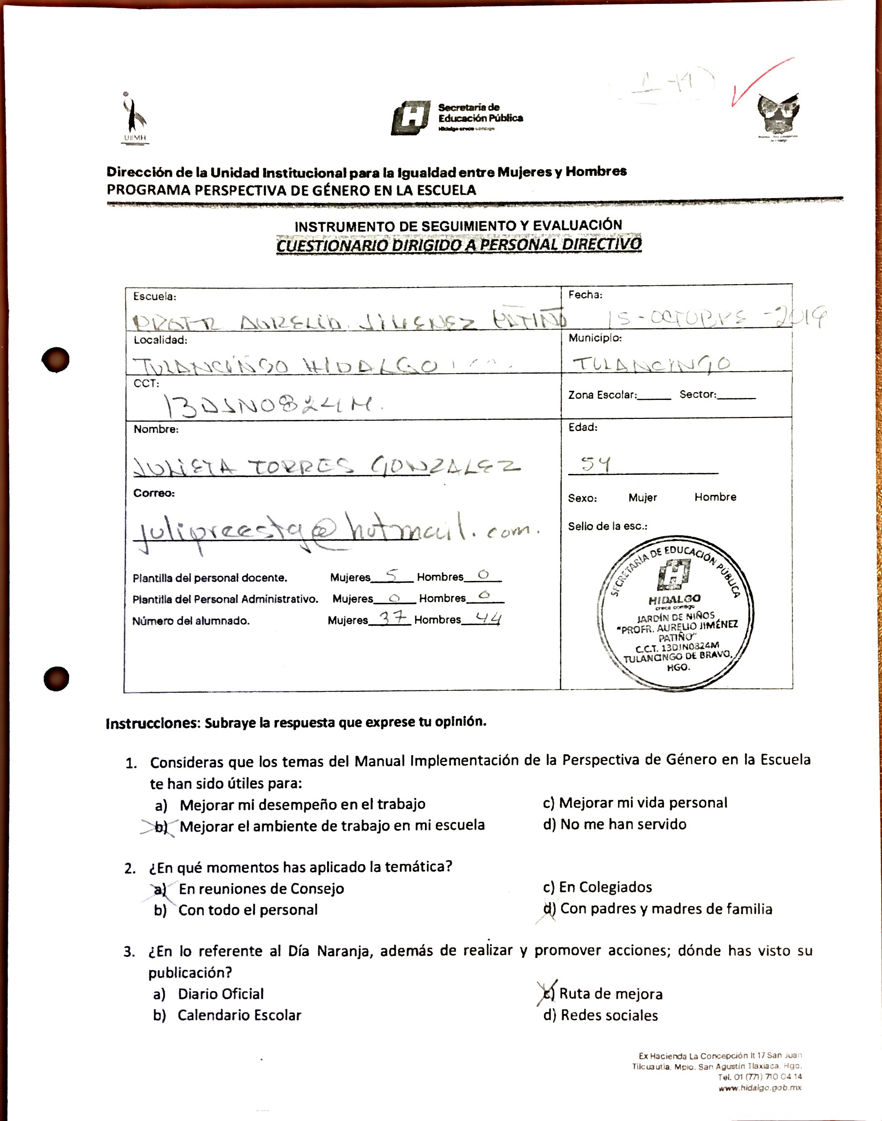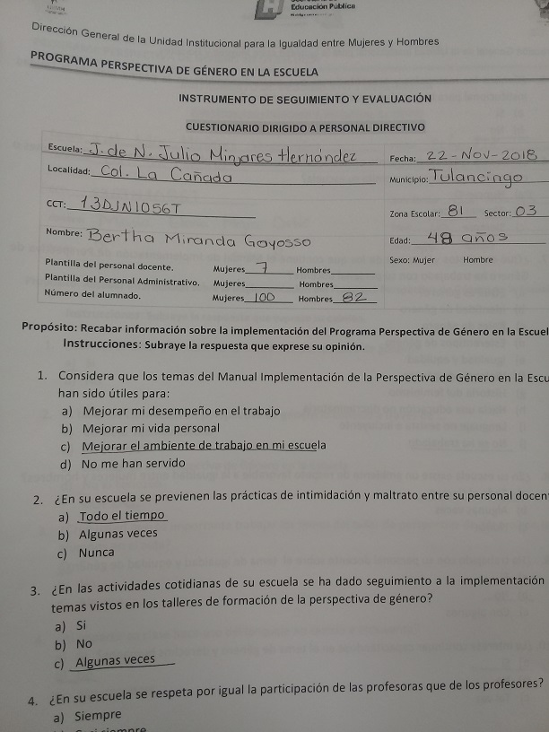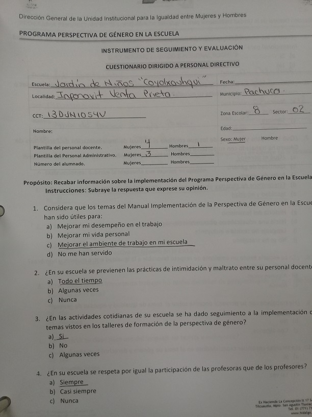 Cuestionario Dirigido a Personal Directivo del Jardín de Niños Julio Minjares