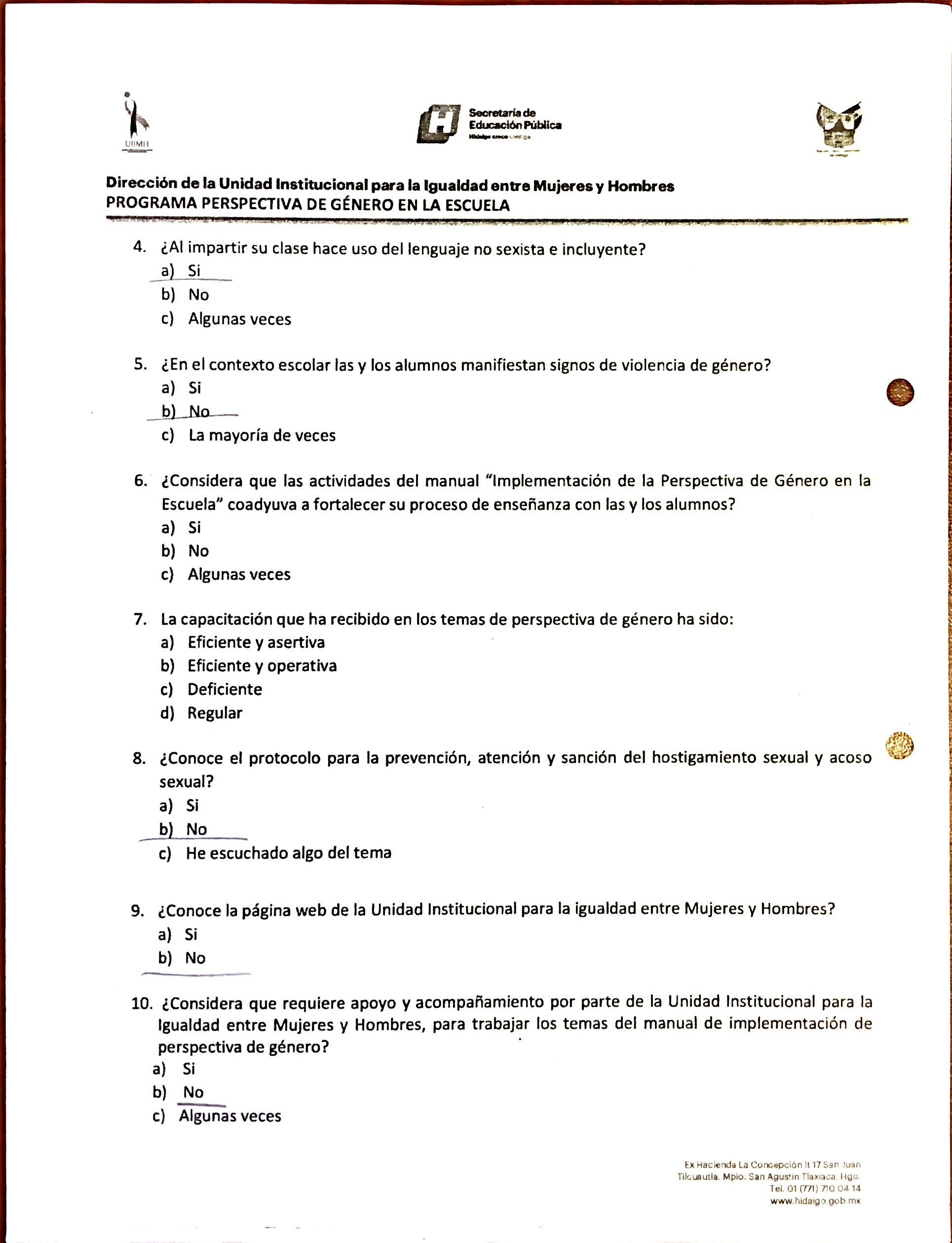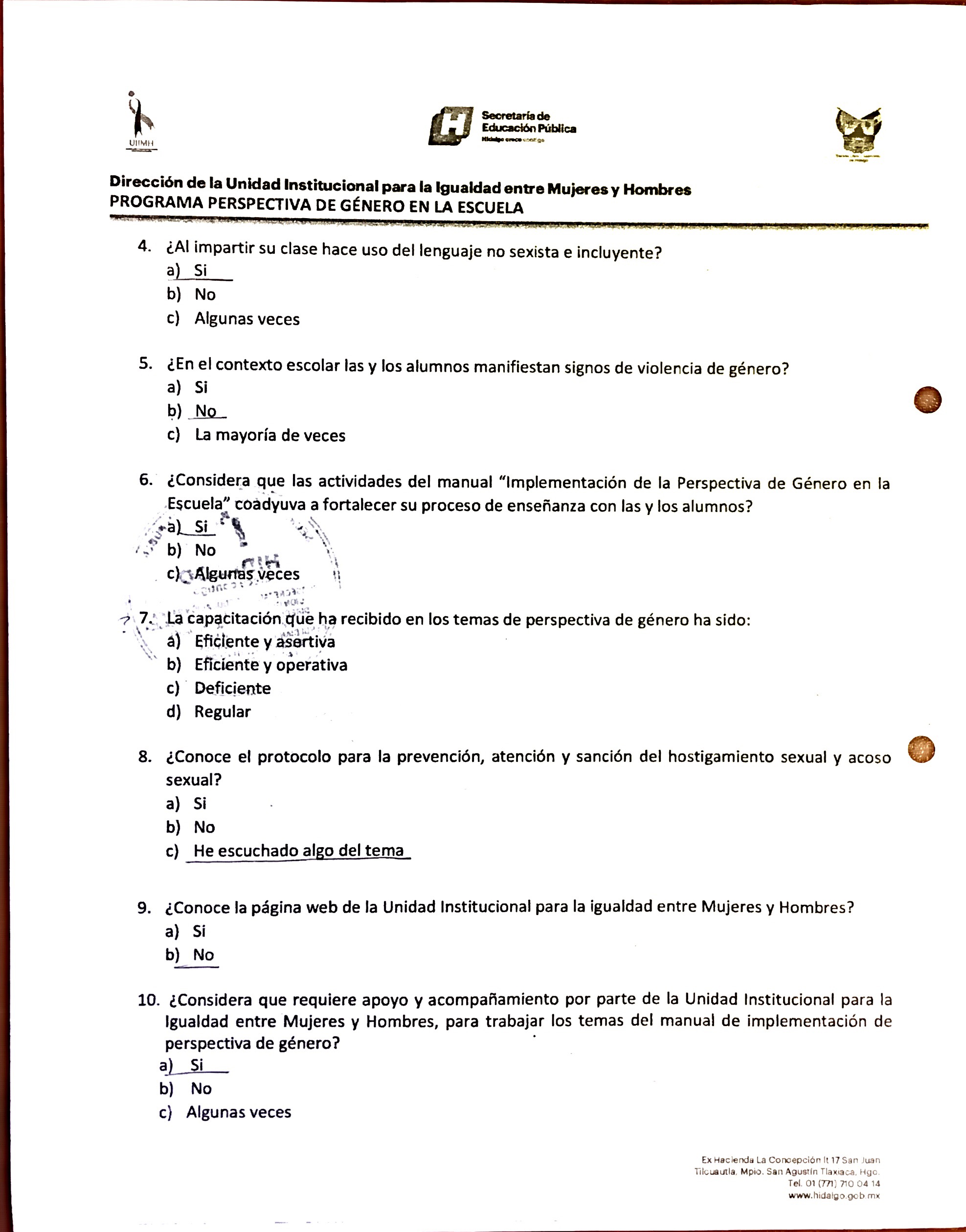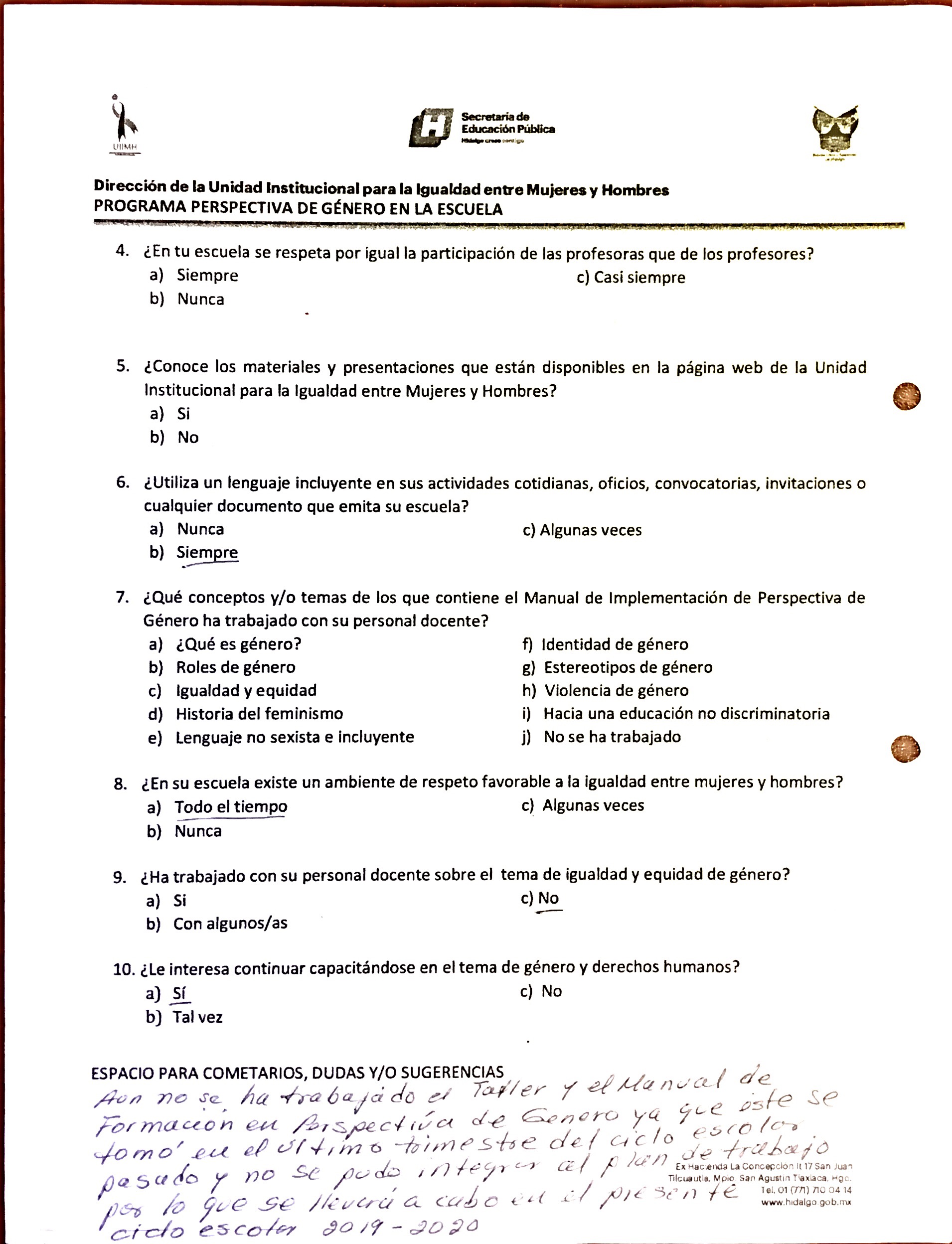 Cuestionario Dirigido a Personal Directivo del Jardín de Niños Julio Minjares