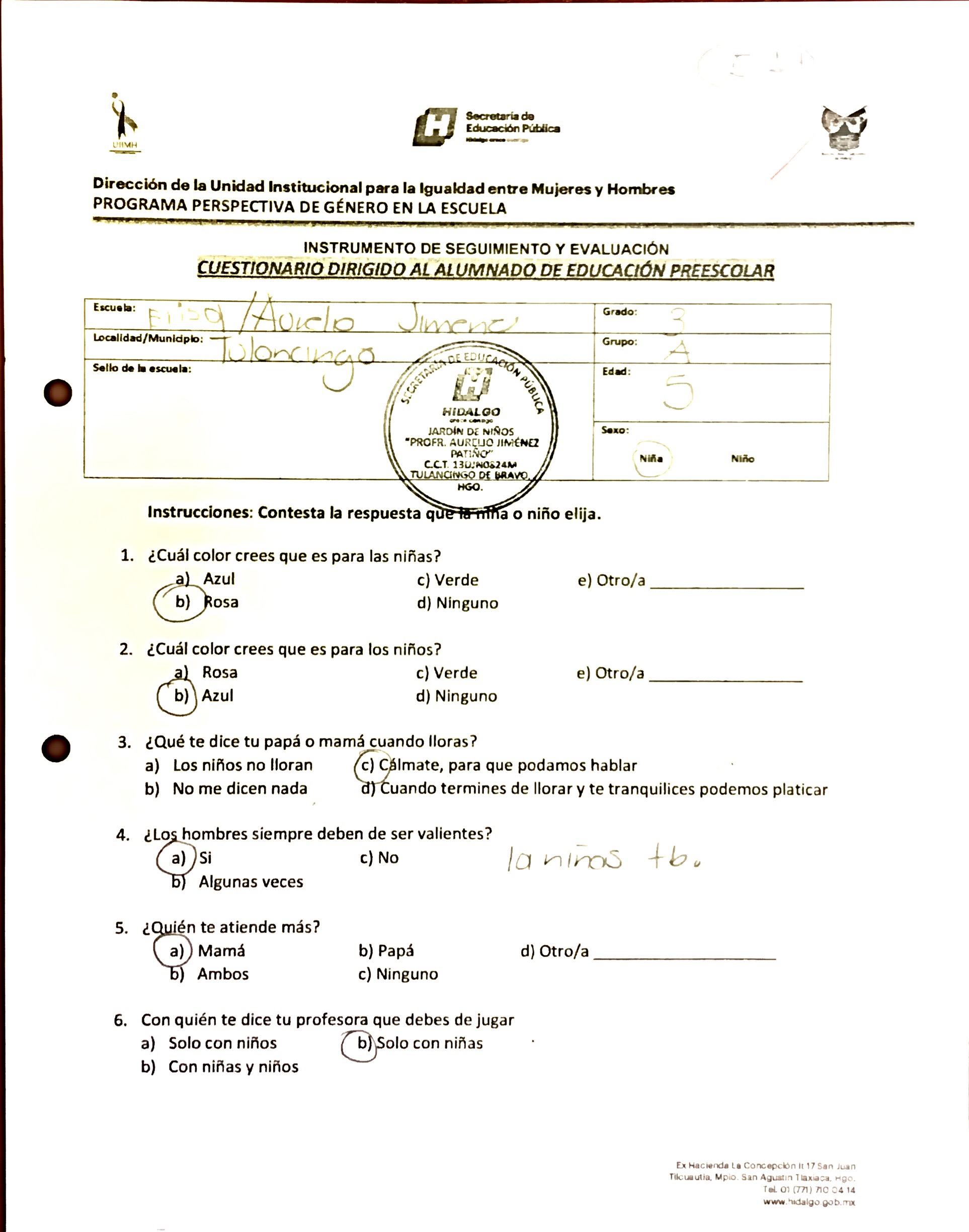 Prescolar Aurelio Jimenez Patiño Alumno Tulancingo