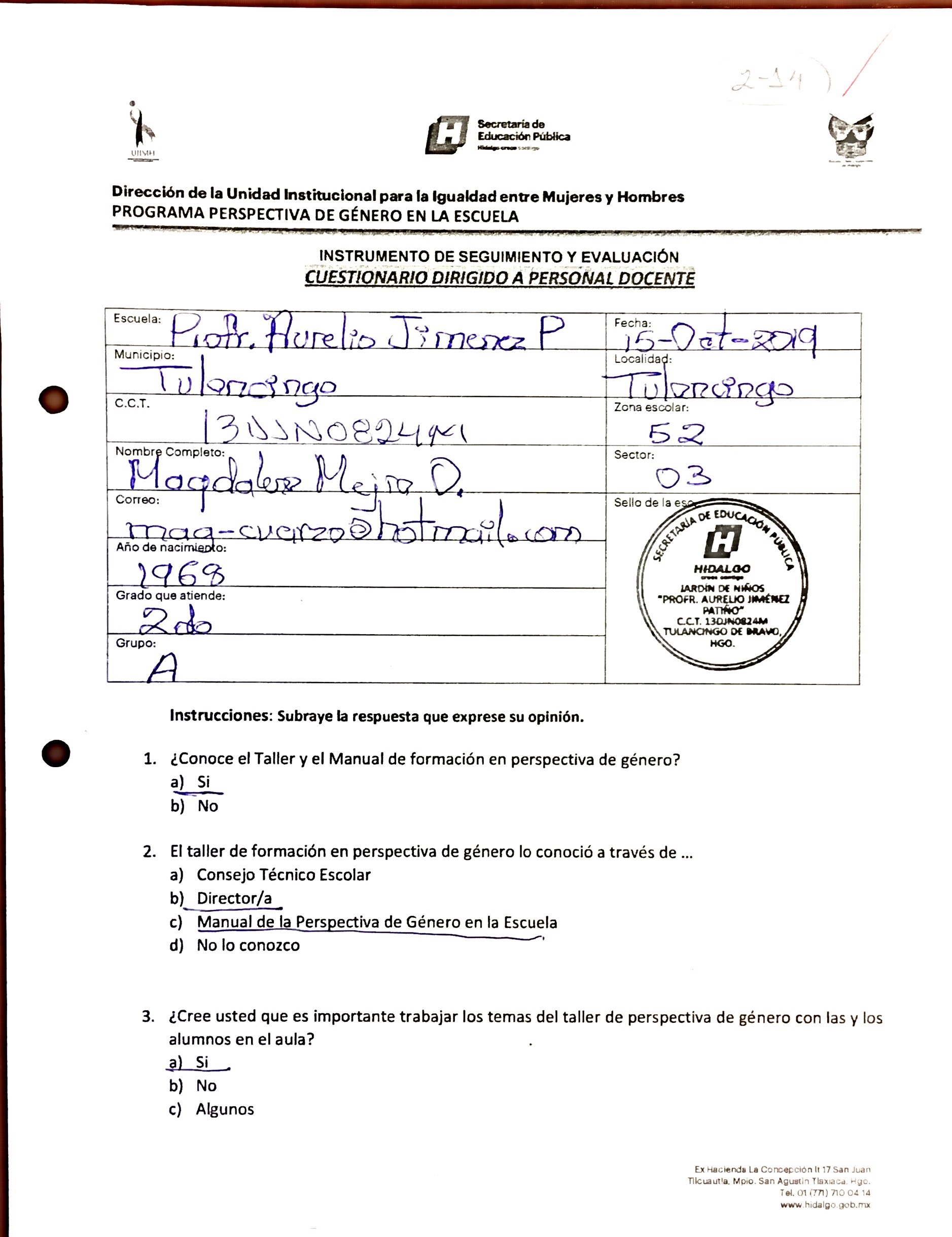 Preescolar Aurelio Jimenez Tulancingo Directivo Vuelta