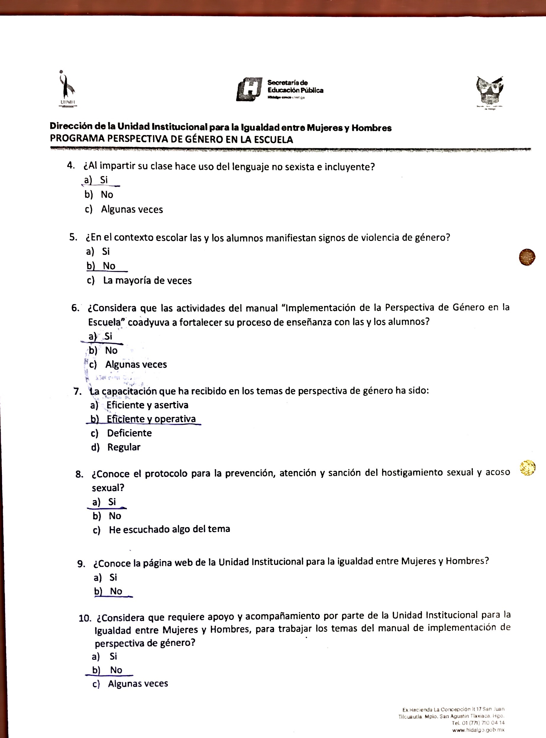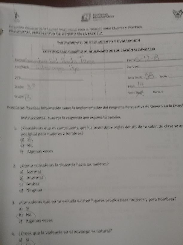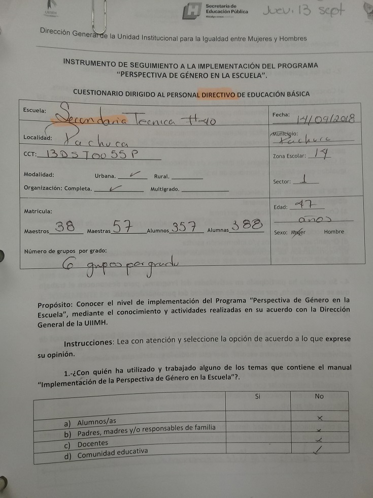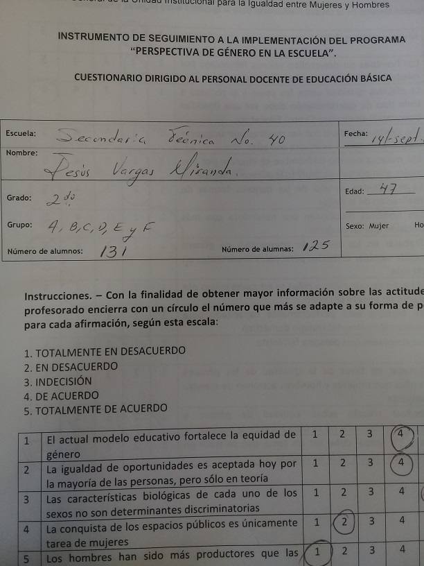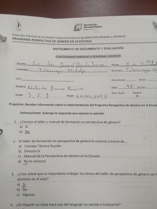 Cuestionario Dirigido al Alumnado de la Esc. Sec. Benito Juárez