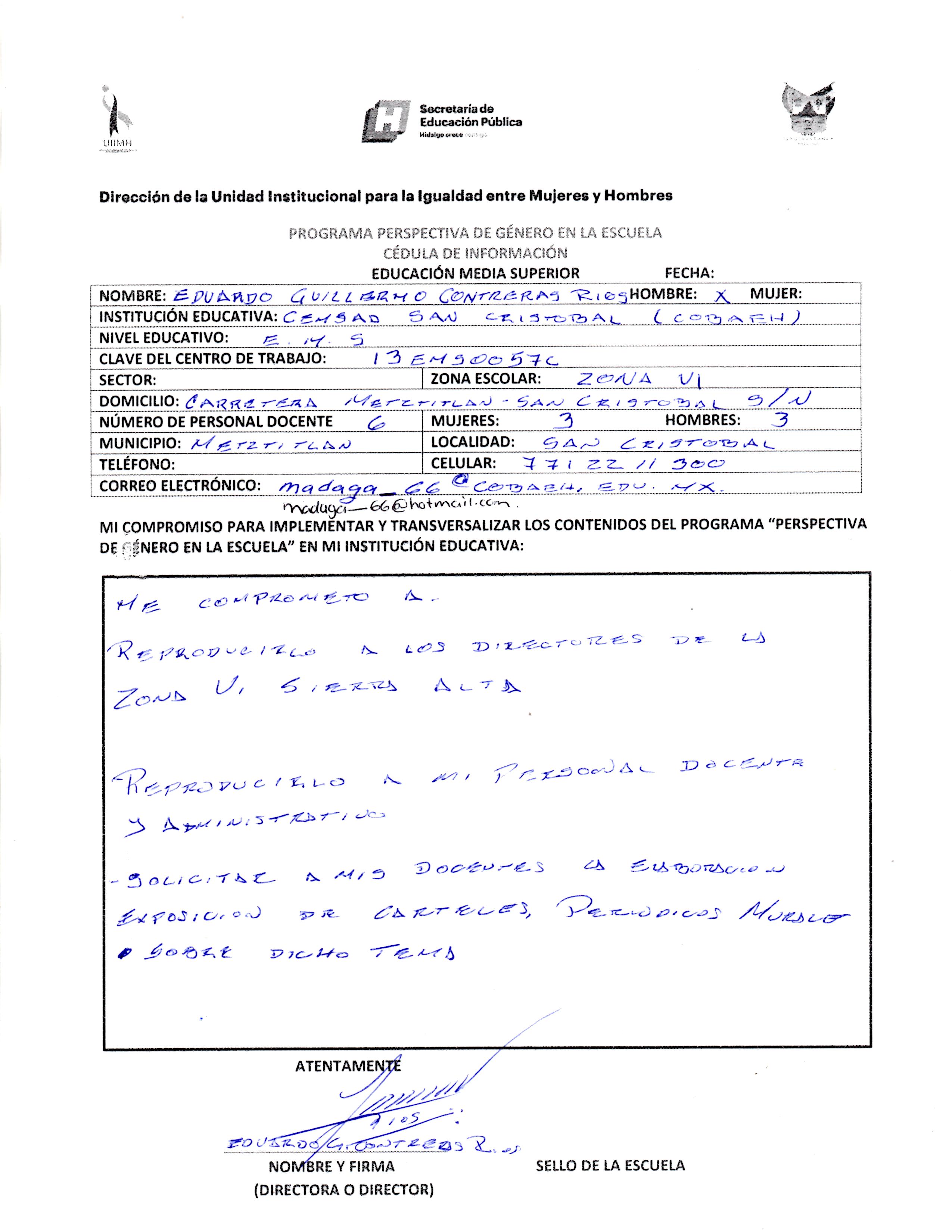 CÉDULA DE INFORMACIÓN Y COMPROMISO