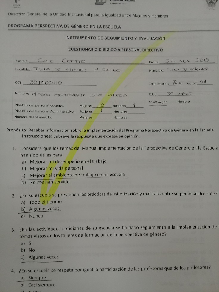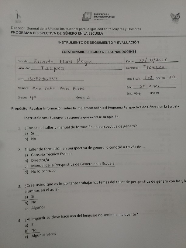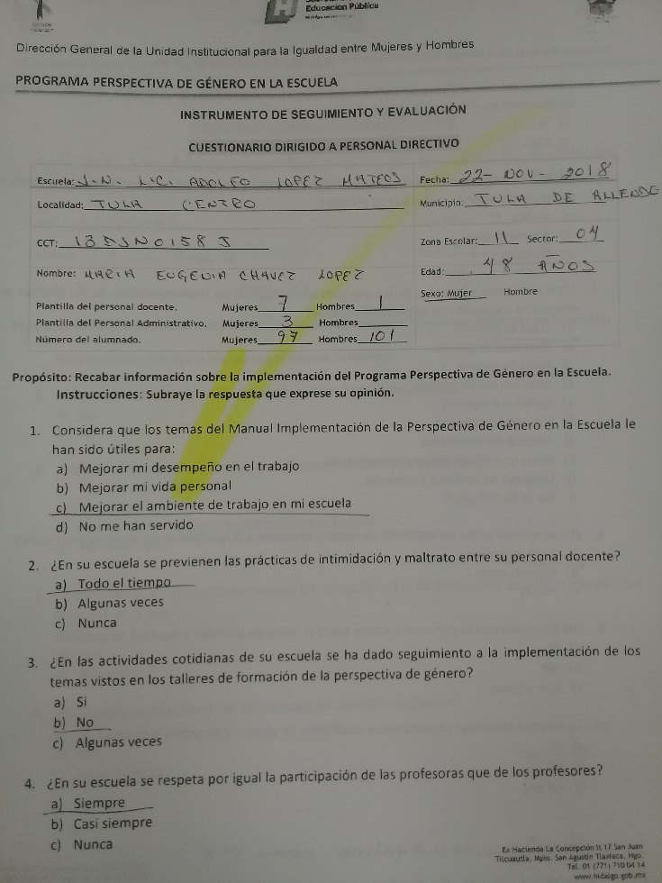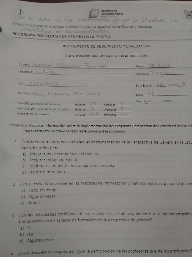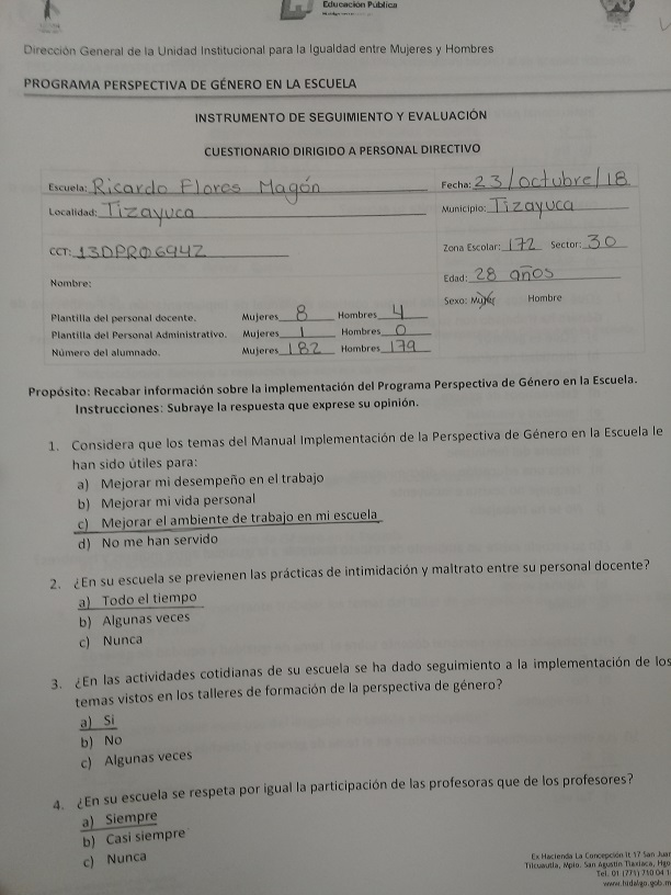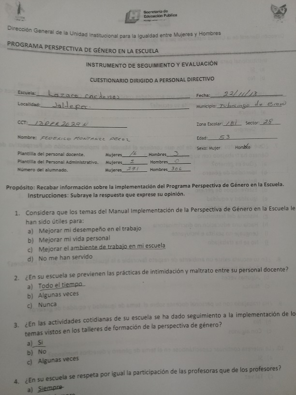 Cuestionario Dirigido a Personal Directivo de la Es. Prim. Lázaro Cárdenas