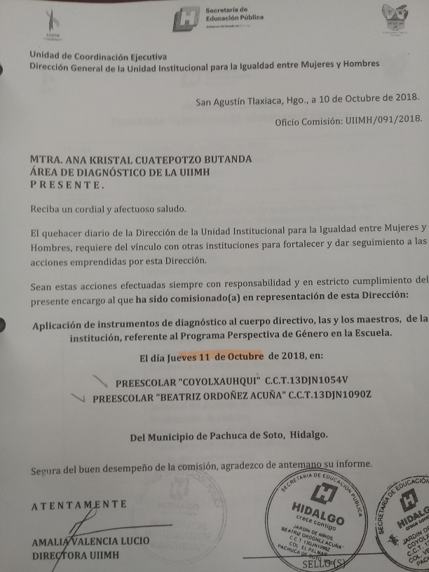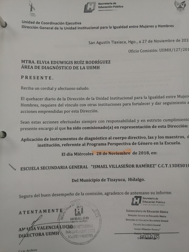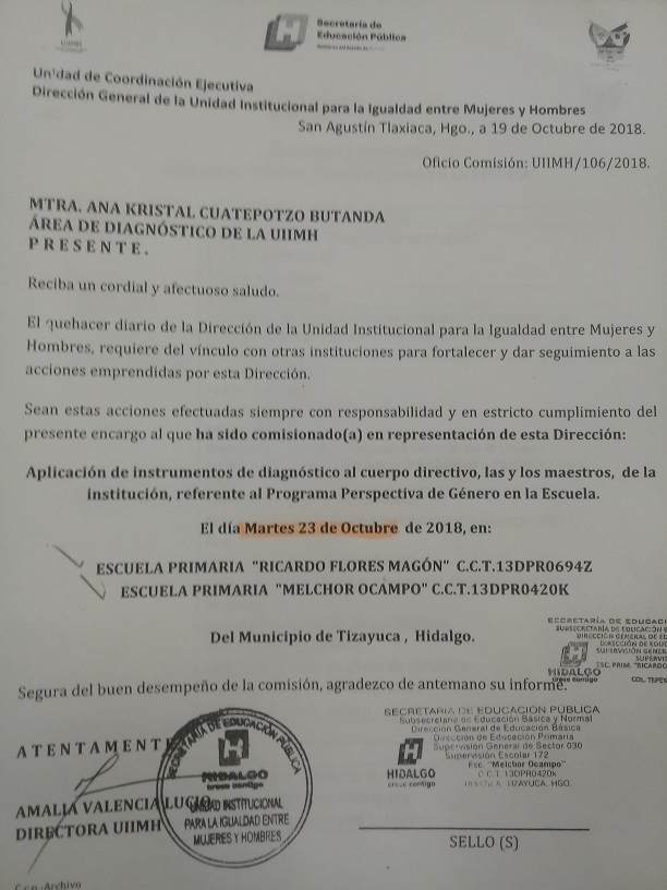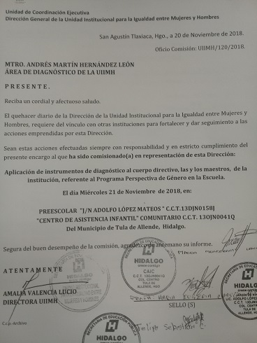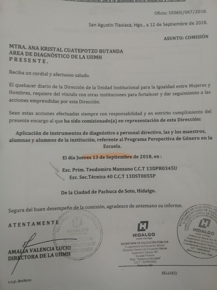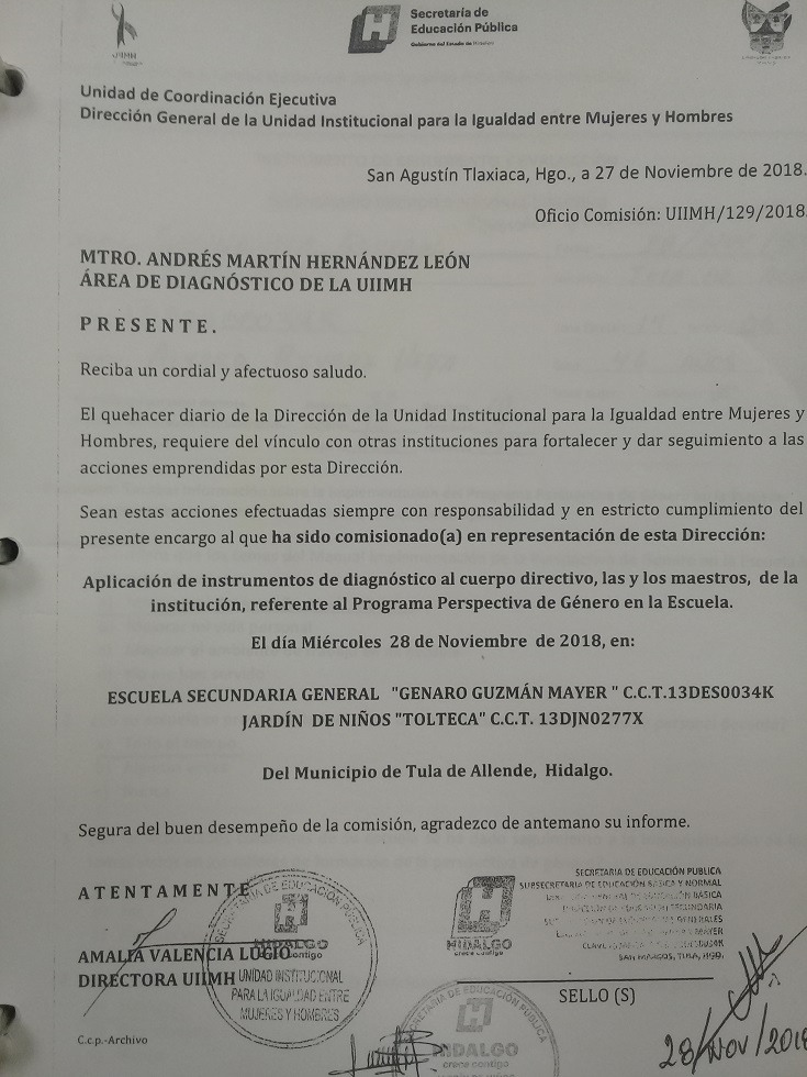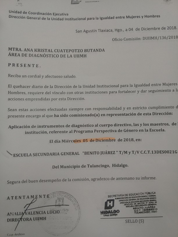 Oficio de Comisión de la Esc. Sec. Benito Juárez